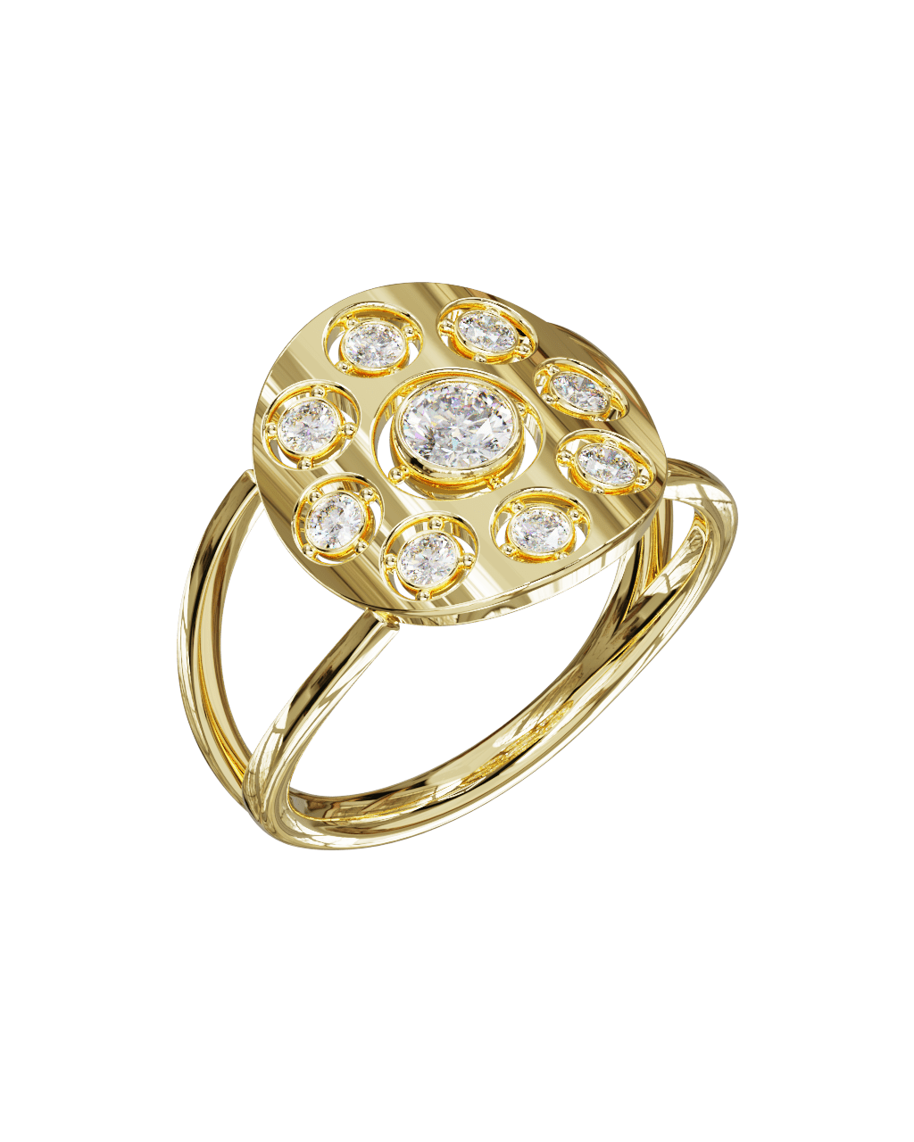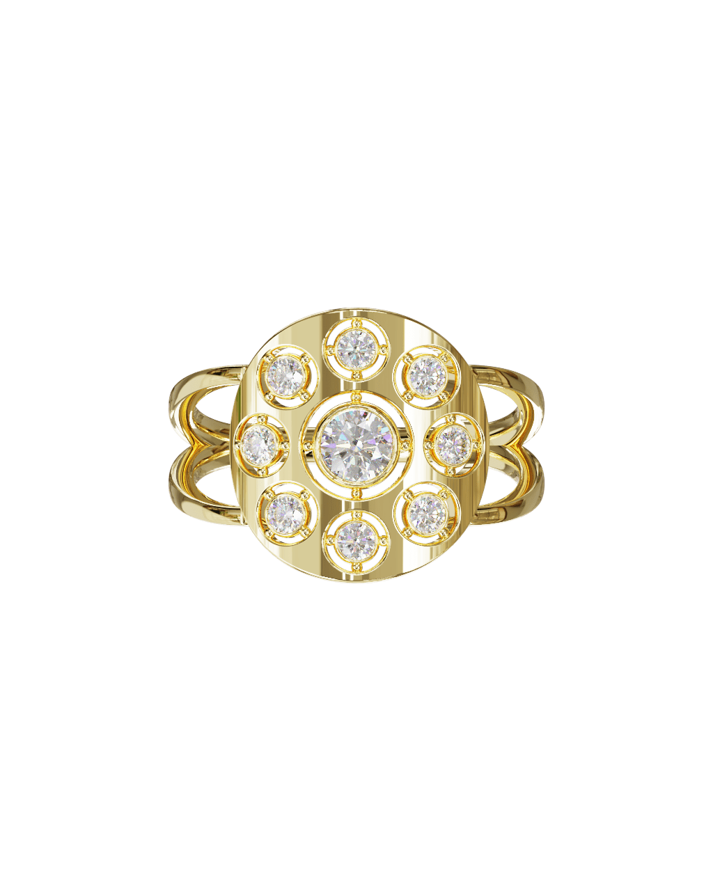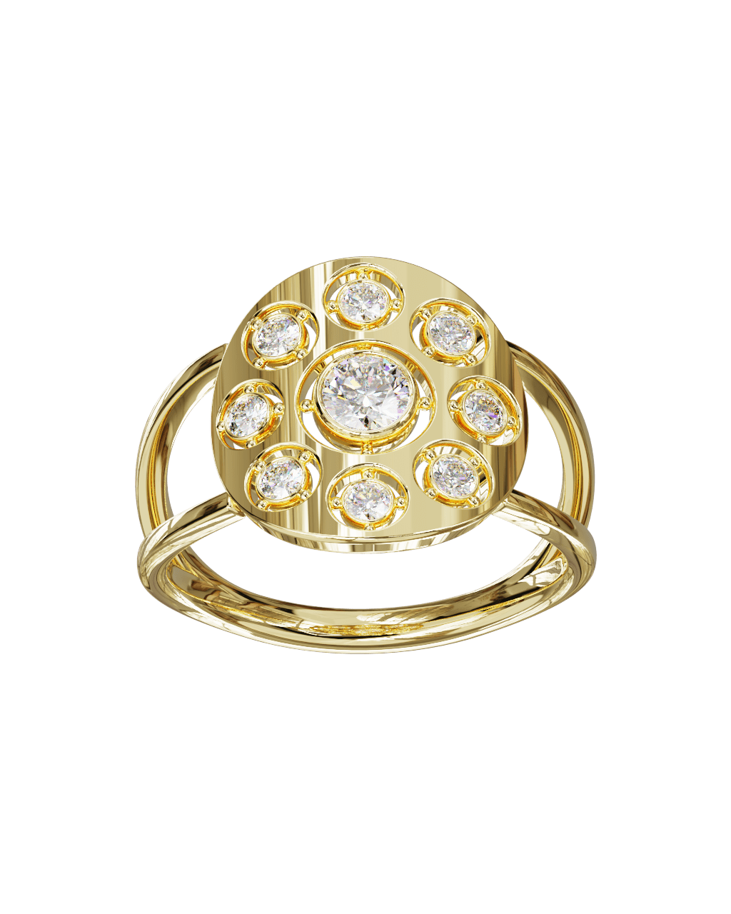Spécifications : Or 750/1000 2.4gr, Diamant de synthèse Central Rond de 0.22Ct, D, VS+ de diamètre 3.9mm entouré de 8 diamants de synthèse Rond de 0.03Ct de diamètre 2mm soit 0.46Ct total