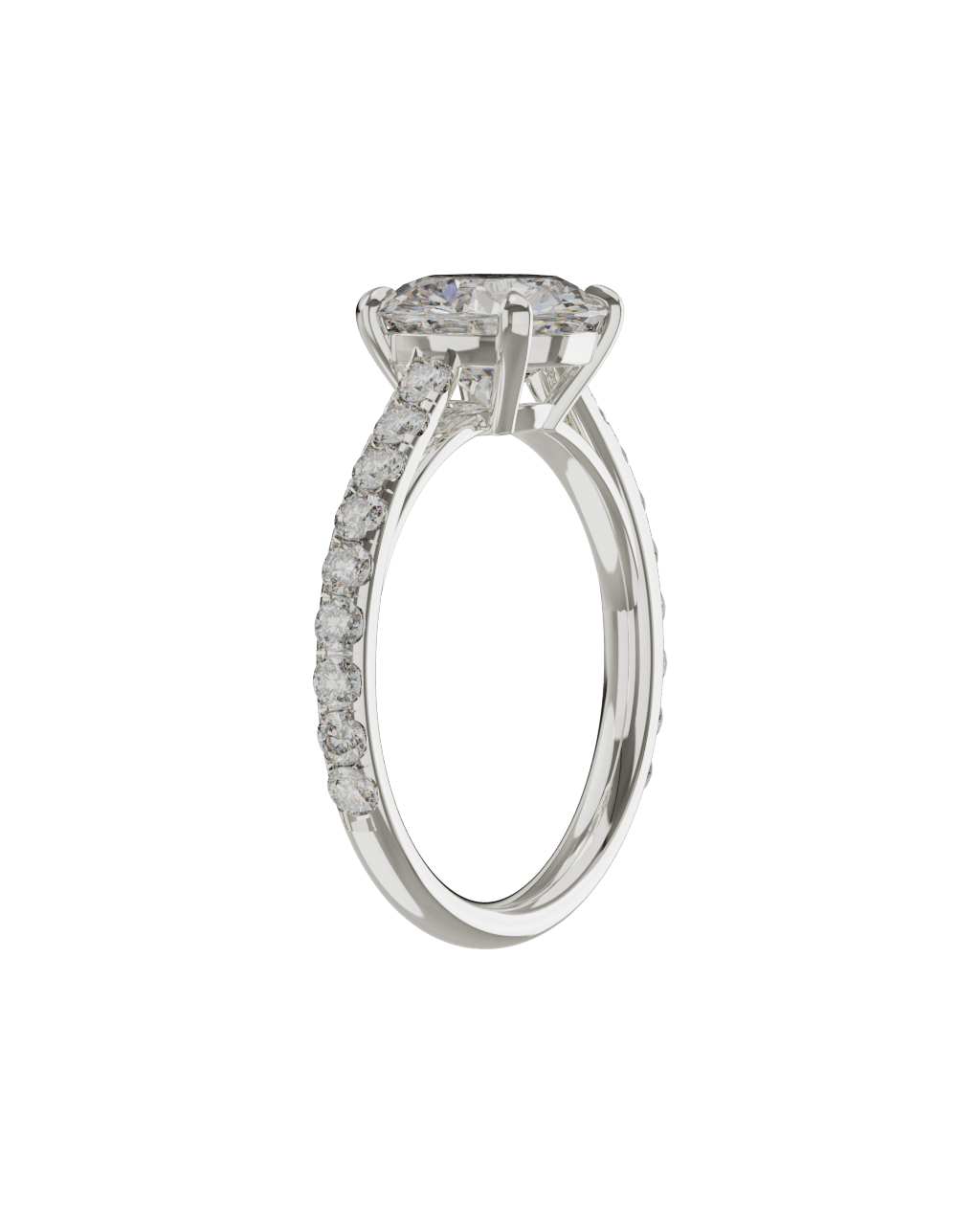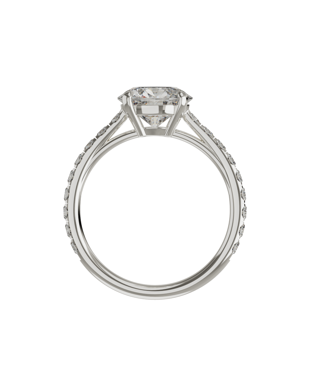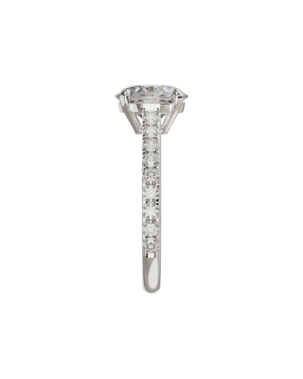 Spécifications : Or 750/1000 3.0gr, Diamant de synthèse Central Rond de 2.0Ct, D, VS+ de diamètre 8.19mm entouré de 20 diamants de synthèse Ronds de 0.025Ct soit 2.50Ct total