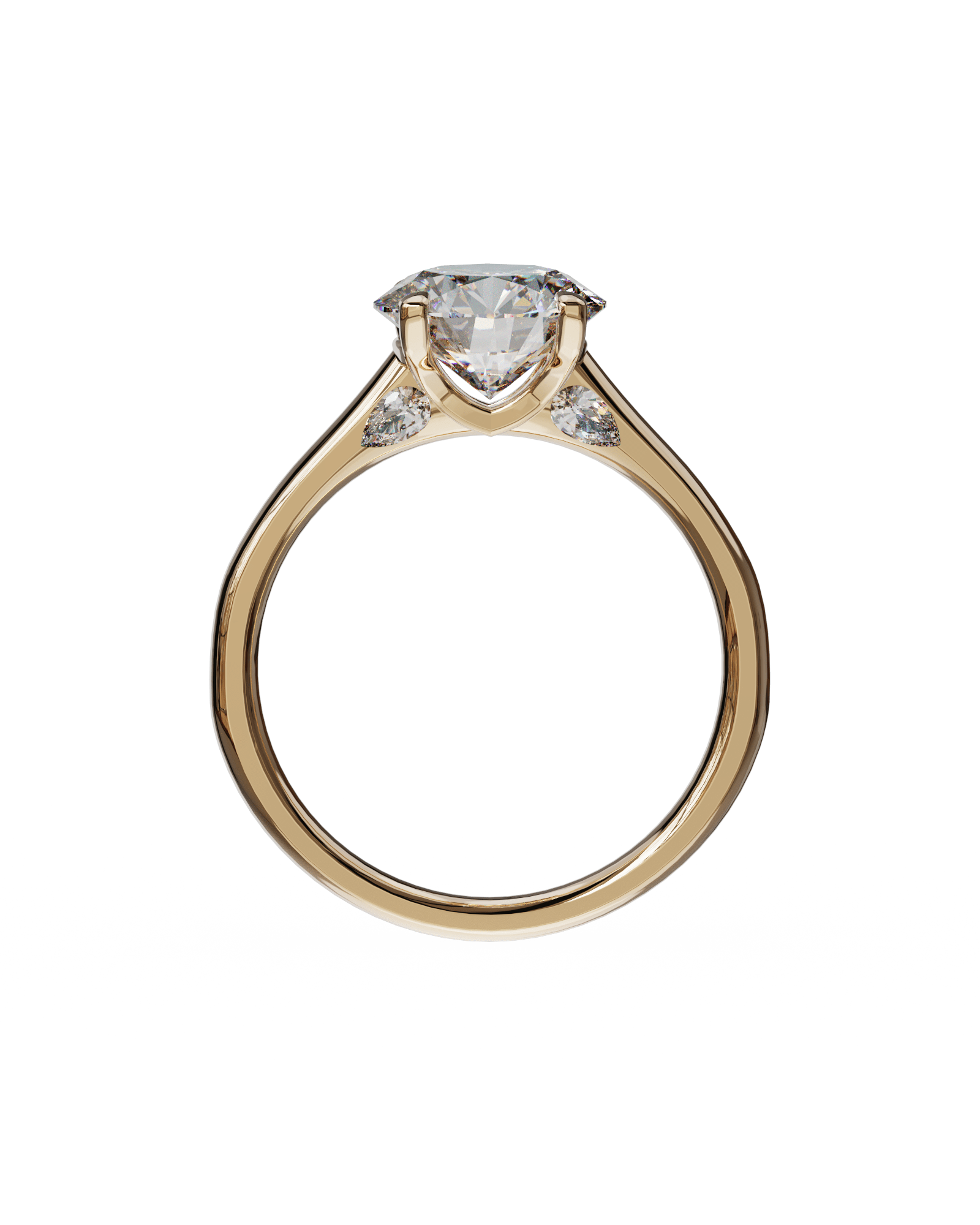 Spécifications : Or 750/1000 3.0gr, Diamant de synthèse Central Ovale de 2.0Ct, D, VS+ entouré de 4 diamants de synthèse Poires de 0.06Ct soit 2.24Ct total