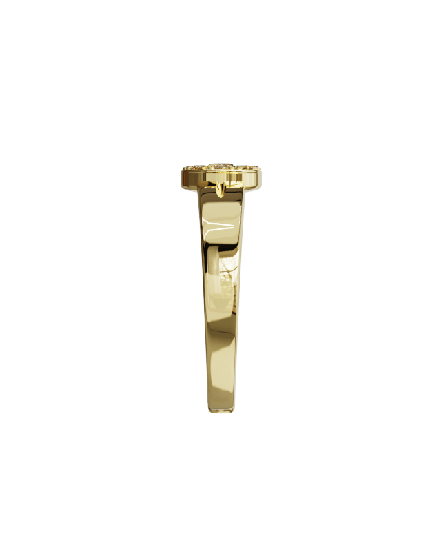 Specifications: 18k gold (750/1000) 22.0g, 1.0ct round synthetic diamond center, D, VS+, 6.50mm diameter, surrounded by 8 round synthetic diamonds of 0.20ct each, for a total of 2.60ct