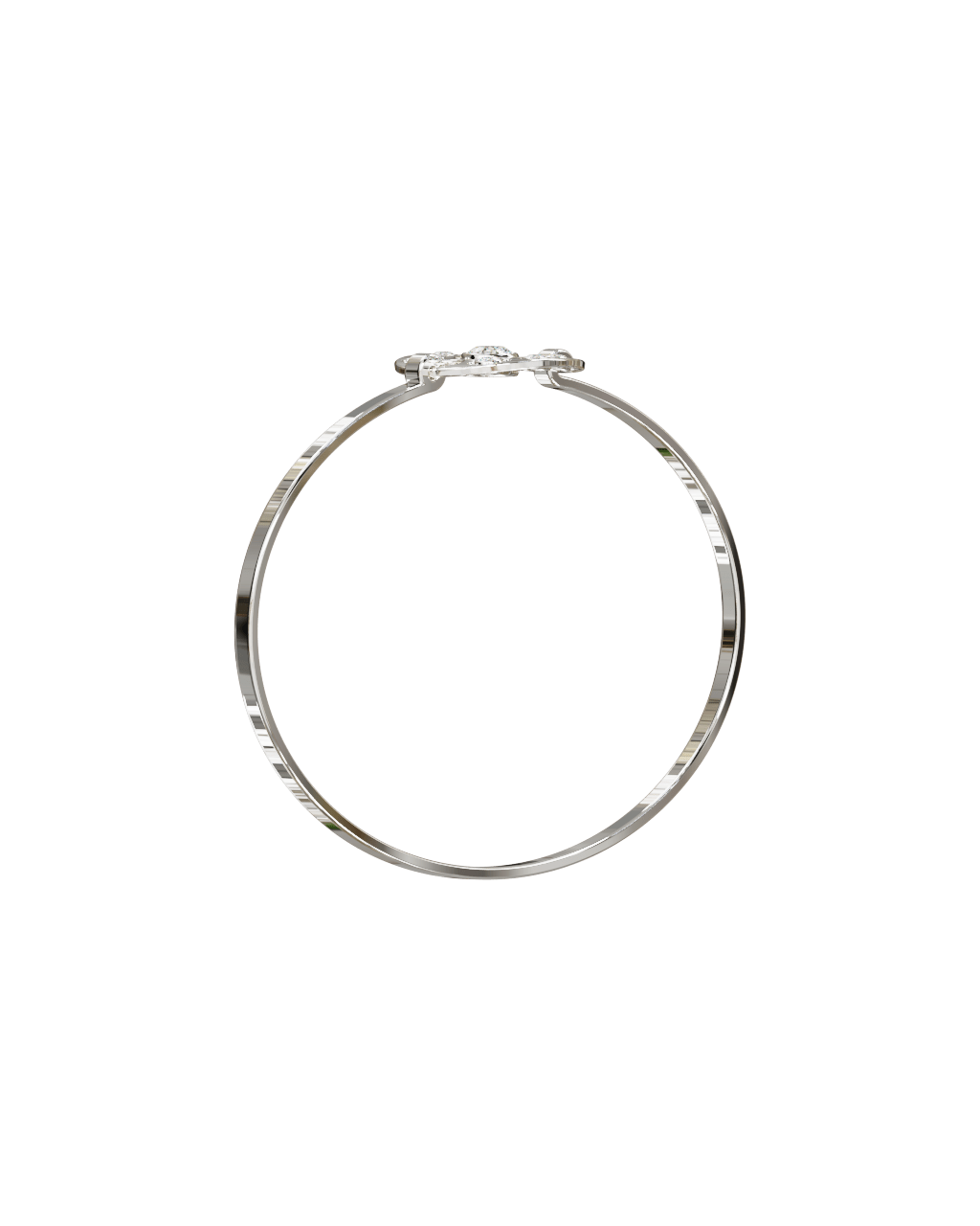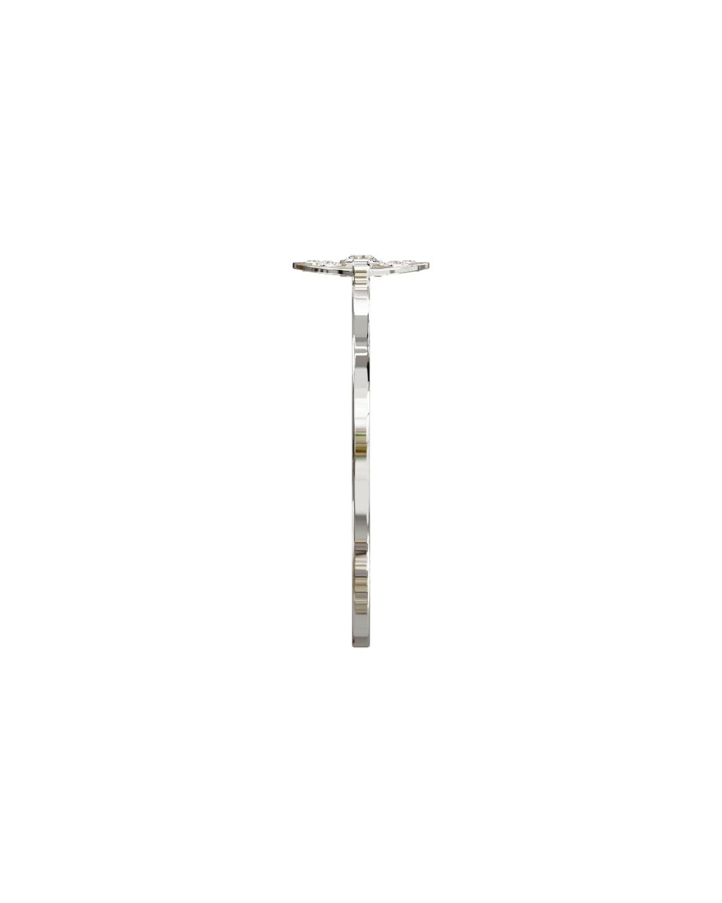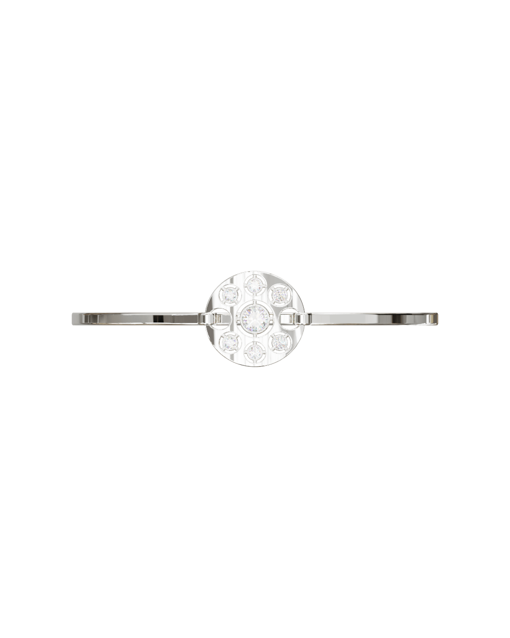 Specifications: 18k gold (750/1000) 6.0g, 0.22ct round synthetic diamond center, D, VS+, 3.90mm diameter, surrounded by 8 round synthetic diamonds totaling 0.030ct (0.46ct total).