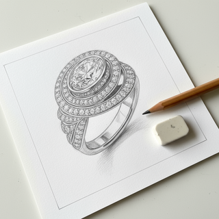 From this idea emerges a hand-drawn sketch, the first tangible expression of your jewel. The lines, proportions, and balance are refined until its essence is revealed.