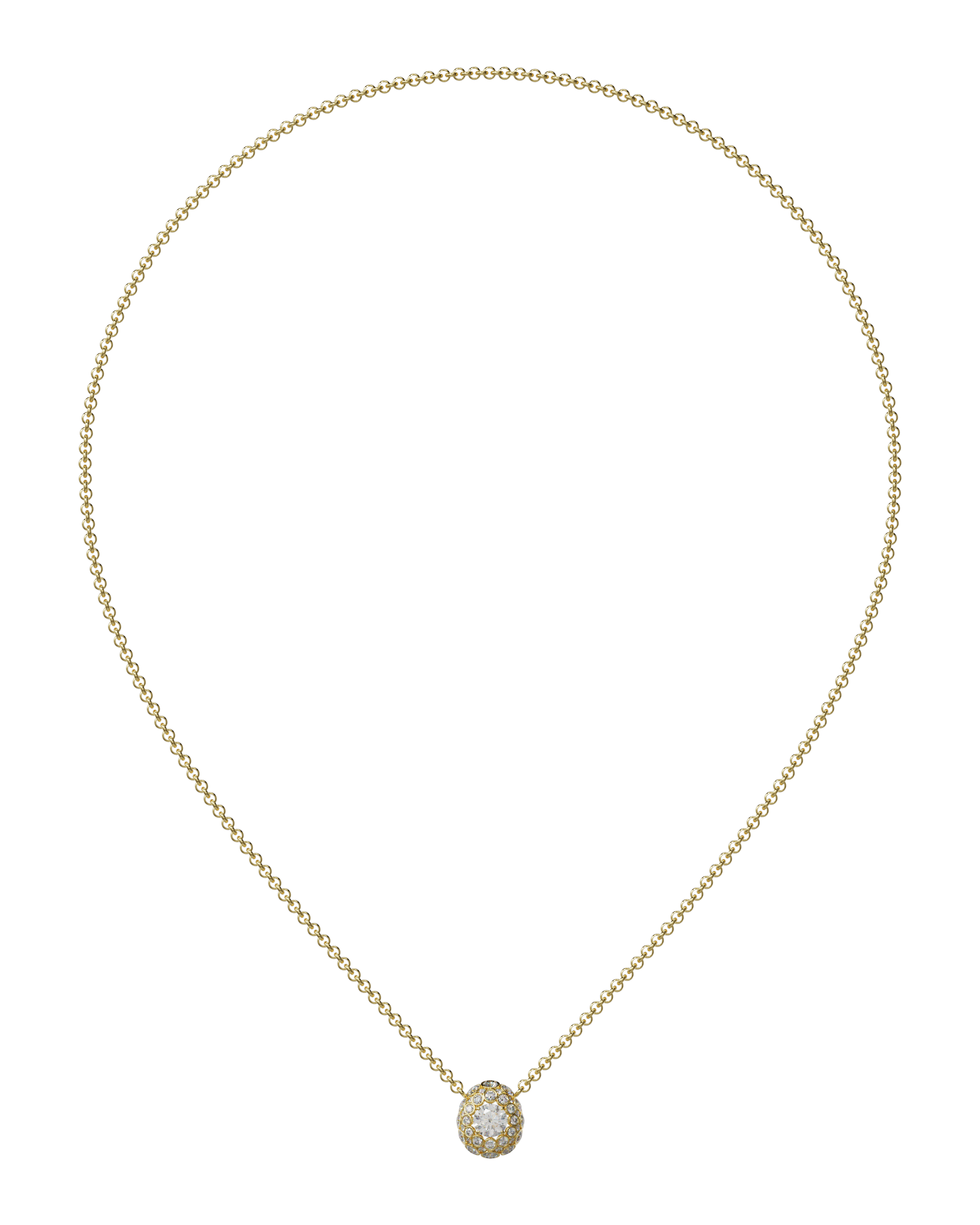 Specifications: 750/1000 gold, 7.0g, 1.0ct round synthetic diamond center, D, VS+, 6.50mm diameter, surrounded by 12 round synthetic diamonds of 0.03ct each, for a total of 1.72ct
